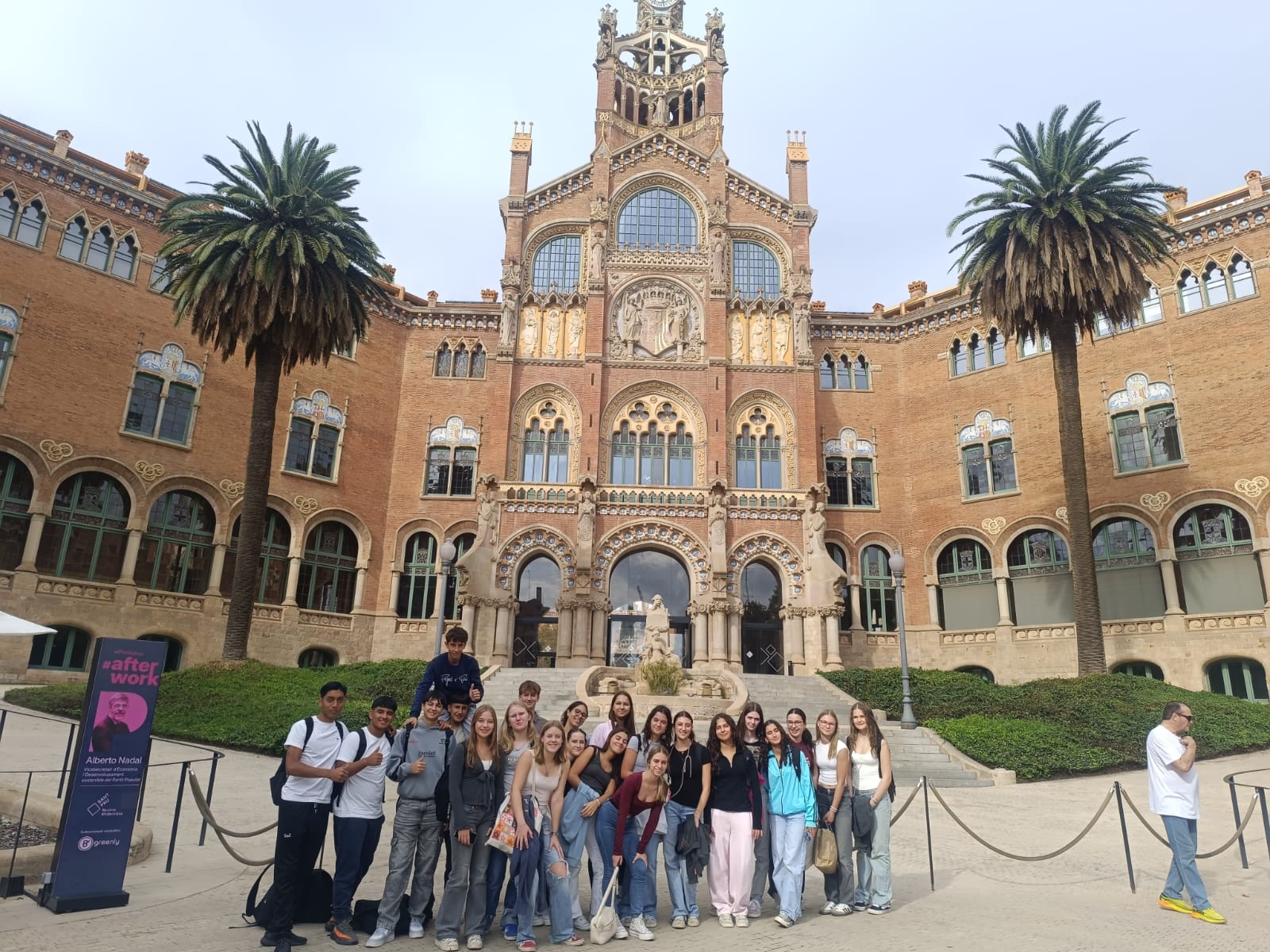 Una de les activitats més destacades ha estat la visita a l’Hospital de Sant Pau de Barcelona, un dels recintes modernistes més emblemàtics de la ciutat. Els alumnes, acompanyats dels seus companys alemanys, han pogut descobrir la història i l’arquitectura d’aquest espai únic, així com reflexionar sobre la seva importància en l’àmbit de la salut i el patrimoni.